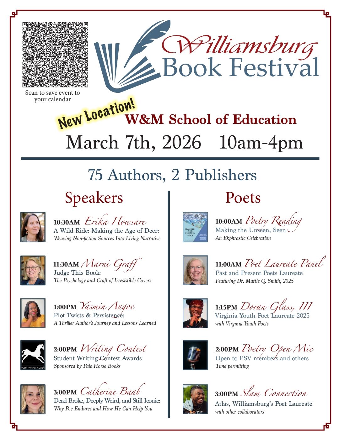 PSV at Williamsburg Book Festival, March 7th at W&M January 27, 2026January 27, 2026Add a comment Share this: Share on X (Opens in new window) X Share on Facebook (Opens in new window) Facebook Like Loading... Related